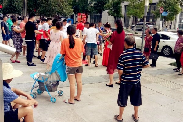 新郎街头被要求背着新娘踩指压板 路人:娶媳妇也是不易