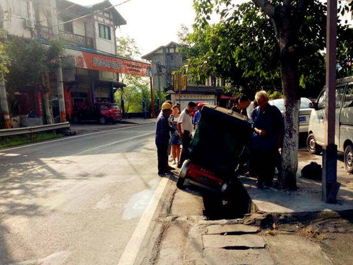 附近的居民很快被这突如其来的情况吓住了,有人连忙来到三轮车边查看情况。