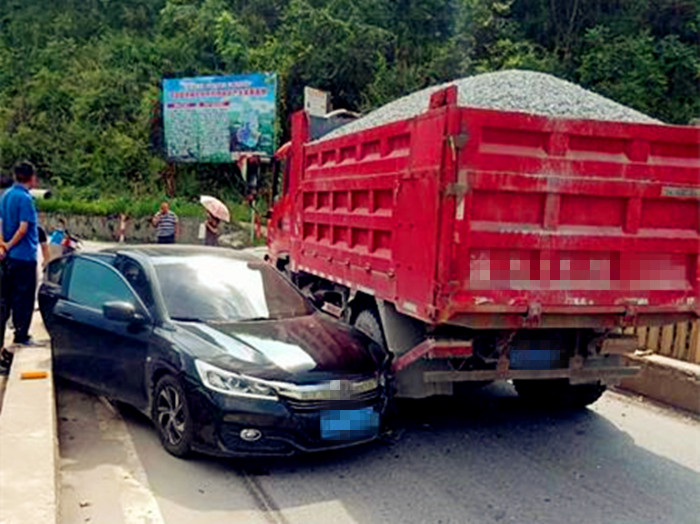 小车货车相向发生擦碰 小车车头破损司机受伤