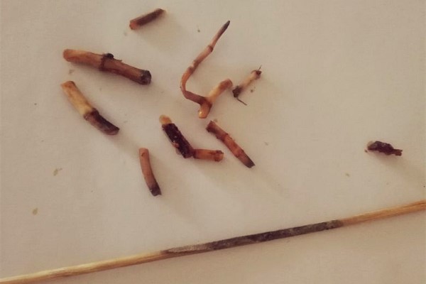 “之前还挺喜欢这家的炸土豆条,尤其是里面的折耳根,这次特意买回来吃,看到里面的东西,我内心是崩溃的”。爆料网友如实说道,“这个签签居然是发霉的,折耳根也是坏的”。