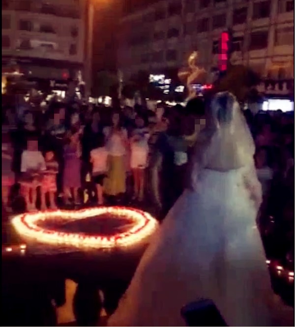9月3日,重庆巫溪,有网友爆料称,在新店文峰老广场附近,一名女子穿着洁白的婚纱,当街向男友进行求婚,现场聚集了一大波市民在此围观。