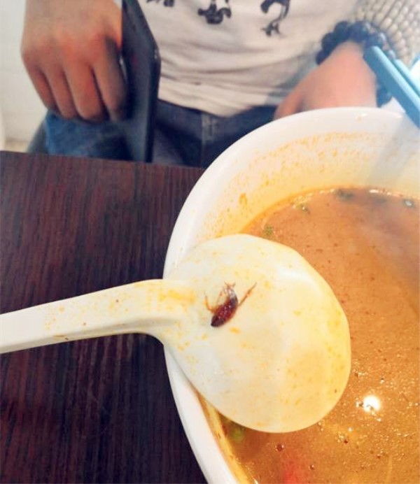 食客点了碗米线 面汤里竟然有只蟑螂