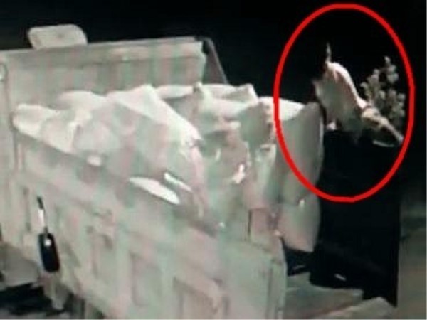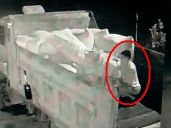 男子刚开始在四处溜达,发现时机不对,便返回去了,当天凌晨两点,男子又出现了,他爬上货车,开始搬运稻谷。