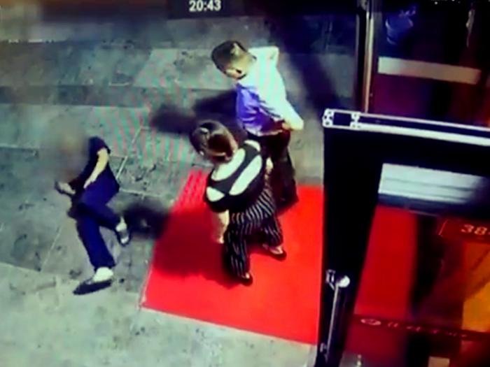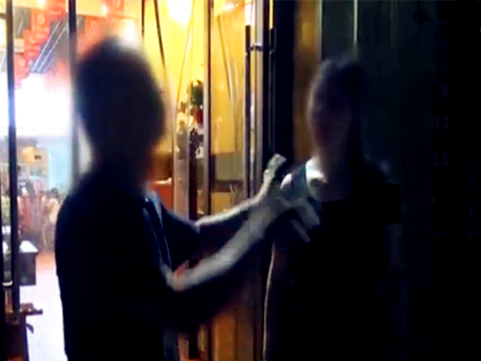 通过监控看见,何先生与餐馆老板曾发生过口角与肢体矛盾,随后何先生夸张倒地。