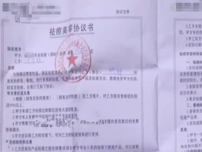 但李女士多次与商家进行沟通后,对方只承认可以调整方案去继续祛痘,但不愿意退还一切费用。“现在自己的治疗时机被耽误了,而且还花了这么多钱,时间也浪费了,我也不愿意再在这里祛痘了。”李女士表达了自己的诉求。