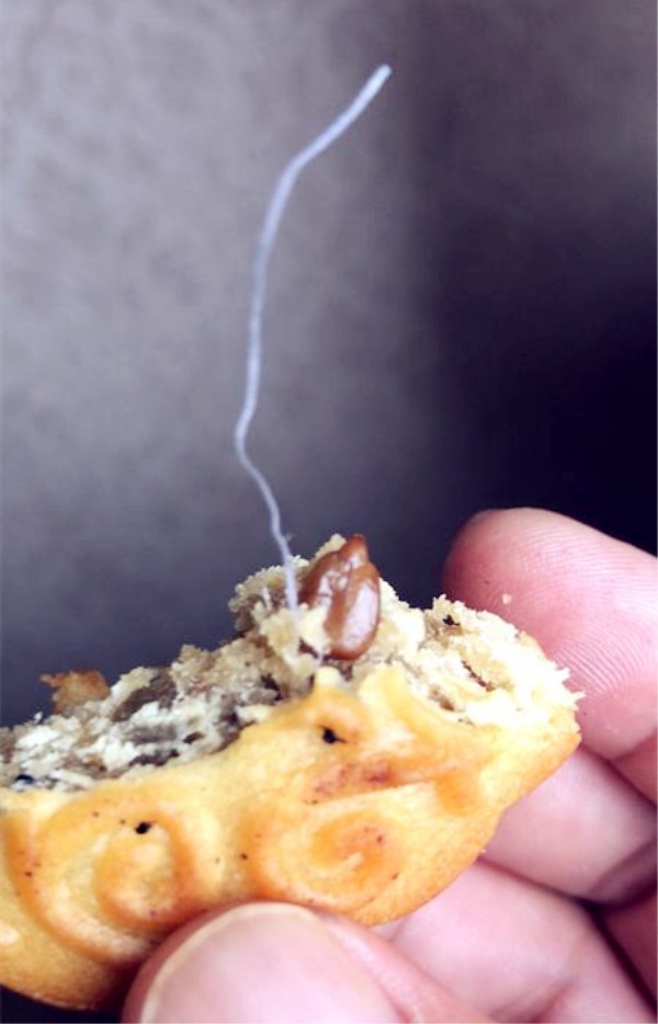 发布时间:2018-09-10 16:36:122018年9月9日,重庆永川,有网友爆料称,在一家店里买回的月饼,结果回家品尝,没吃几口,就发现其中有异物,顿时没了胃口。