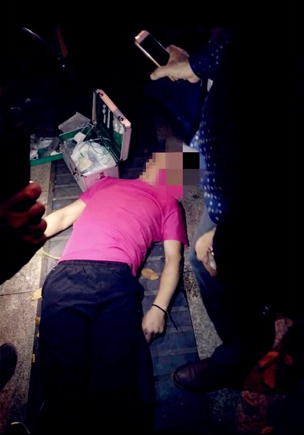发布时间:2018-09-11 14:45:312018年9月10日,重庆长寿,有市民在新城体育馆附近,发现一中年男子锻炼时不慎头朝地掉落,躺在地上不停抽搐,情况十分危急。