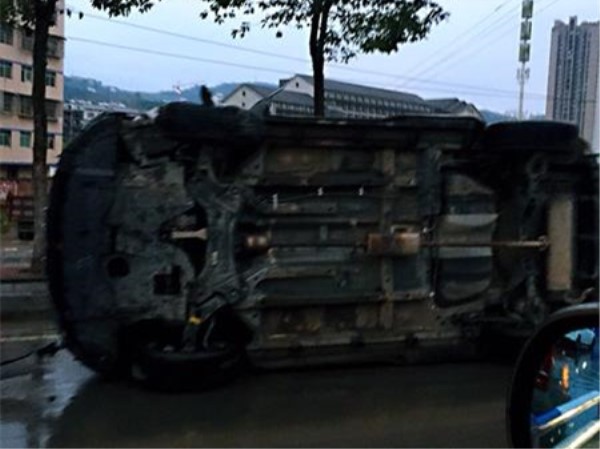 发布时间:2018-09-12 15:25:219月10日,重庆石柱。有市民路过靴井龙河大桥附近,发现一辆川籍牌照的轿车,90度侧翻在道路旁。