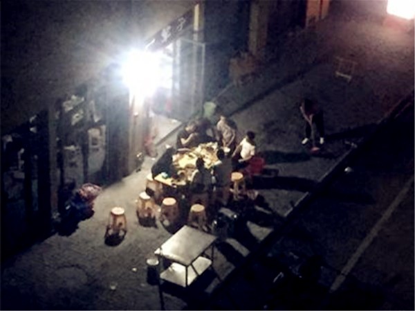 天色黑漆漆的,却传来吃饭聊天的吵闹声,食客们玩起了游戏,喝起了小酒,活跃了就餐氛围。大家忘乎所以,尽情的吃喝玩乐,却没想到附近居民会被吵到辗转反侧。