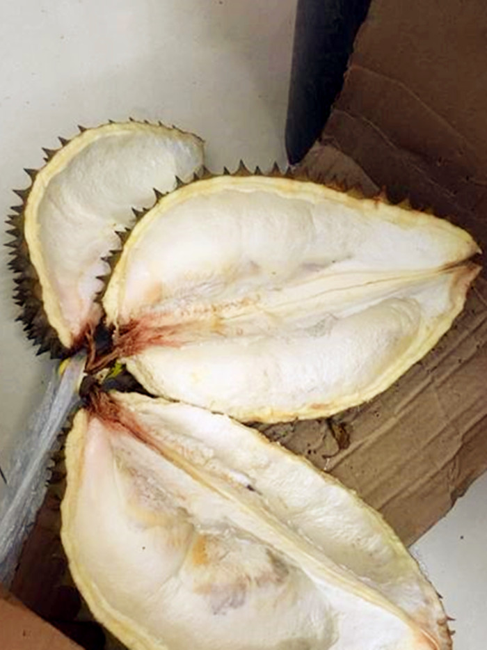 女子百元买来鲜榴莲 回家剖开一看又黑又苦