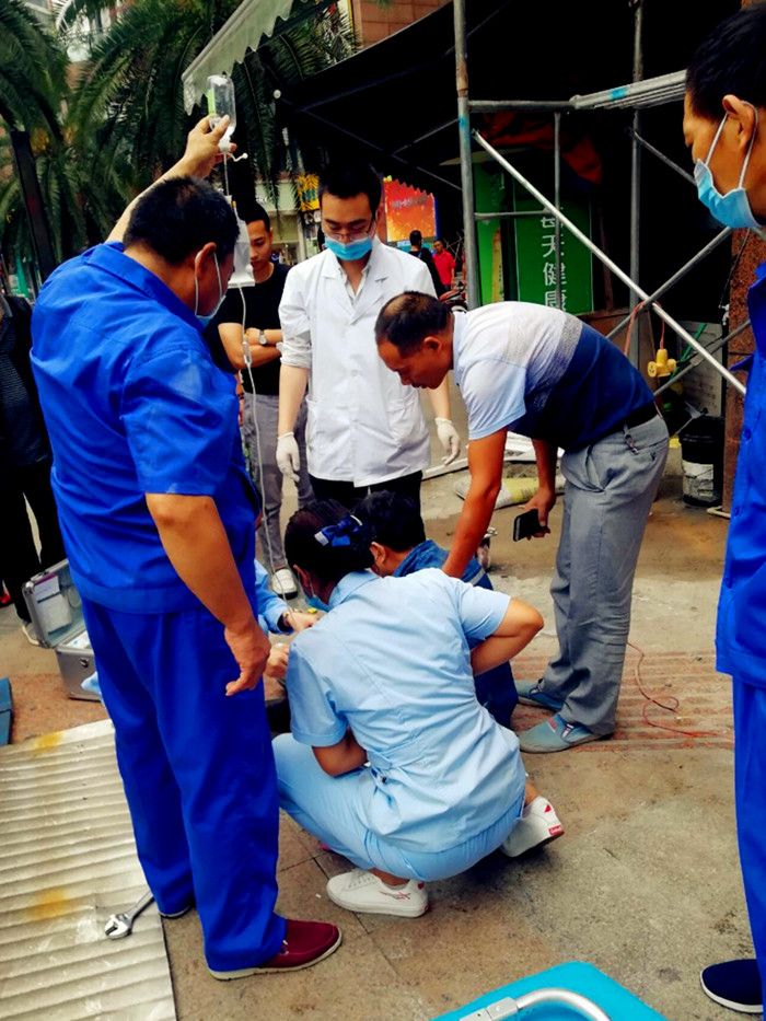 在现场医护人员准备好了担架,并马上在现场展开了输液等一系列的救援动作,目前事故进一步处理中。