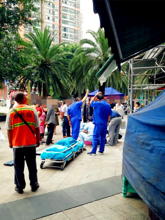 发布时间:2018-09-23 15:11:422018年9月22日,重庆綦江。有市民在世纪花城一期附近,看到一名装修工人受伤倒地,有医护人员在现场进行救治。