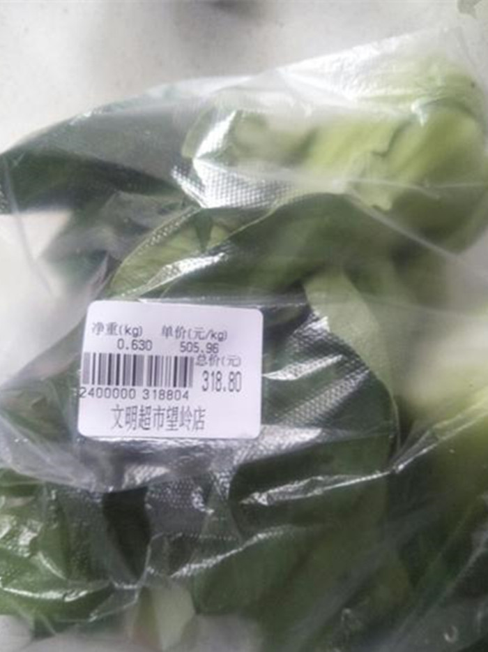 “一般小白菜也就几块钱一斤,我打完价格看都没看一眼,”爆料市民结完账也没察觉到不对劲,“直到回家后,看到标签上的价格才恍然大悟。”回想起这一切,爆料市民又觉得有些好笑。