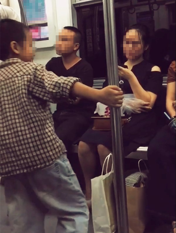 两小孩在车厢内跳“钢管舞” 引起其他乘客注意