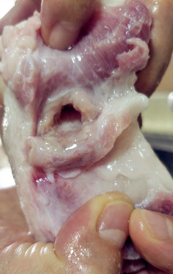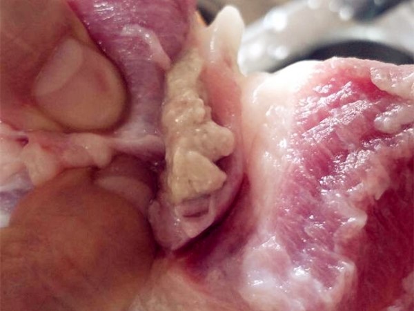 买的猪肉拿回家切开 竟发现不明白色物体