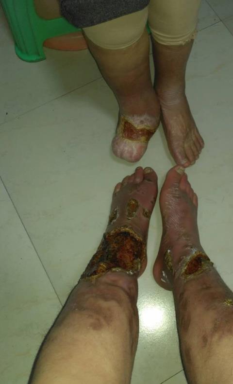 走遍全市大大小小医院都查不出病因,各项身体检查显示正常,中药、西药、偏方试尽都没有效果,南彭街道的一对母子被一种罕见病折磨得痛不欲生。如今虽已是寒冬,但他们的脚始终热到无法穿鞋袜,每天靠吹风扇和冰水泡脚降温,如今脚由发热到变肿再恶化到溃烂,儿子的脚骨都能看见,母亲的脚趾数年前已磨掉,母子俩着急寻医救治。