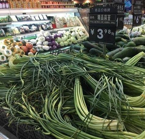 超市销售人员表示,今年因种大蒜的蒜农增加,蒜薹产量也随之增加,加上五一后天气热得快,蒜薹卖不完就会开花,因此集中大量上市,市场上蒜薹价格一路暴跌。