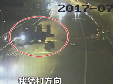7月7日凌晨1时许,在鹅公岩大桥北桥头处,一辆货车突然从一辆小车身后冲出,失去控制径直撞向路中间的隔离带后,又右转撞向了路边的防护栏。