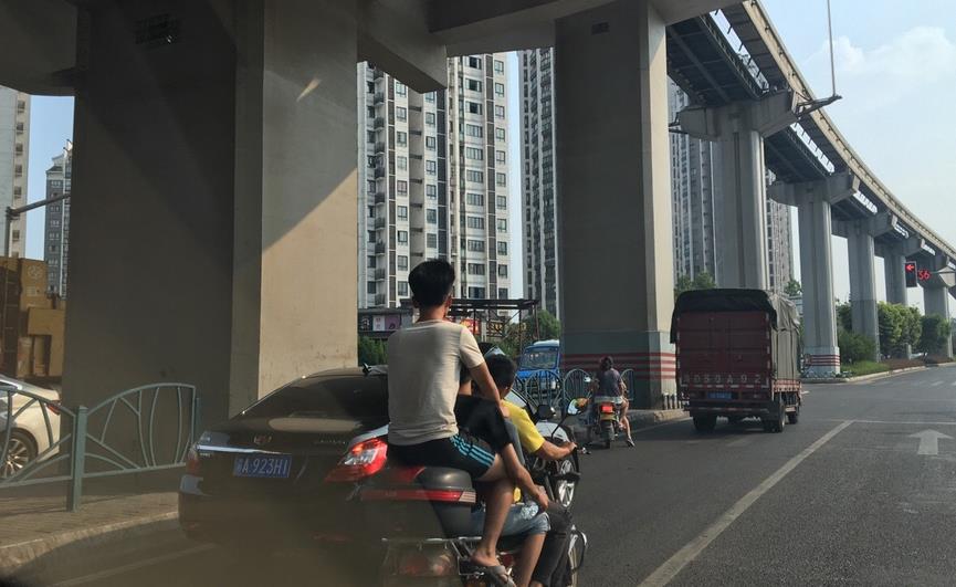 小伙把摩托当轿车开 载着兄弟马路上疾驰