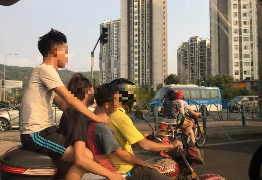 据目击者介绍,该摩托车当时载了4名成年男子在马路上飞奔。