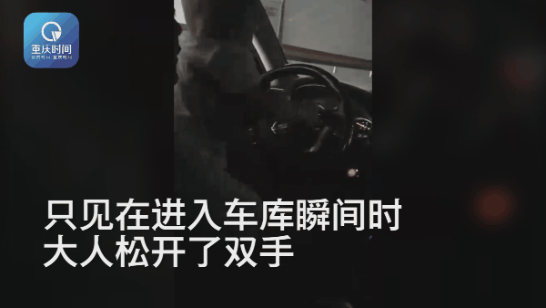 从车窗外的画面可以判断出,男子驾驶的这辆车,正在进入一车库,取卡后,车辆继续前行,当进入车库的瞬间,男子松开了双手,将小孩举了起来,让小孩双手握住方向盘开车。
