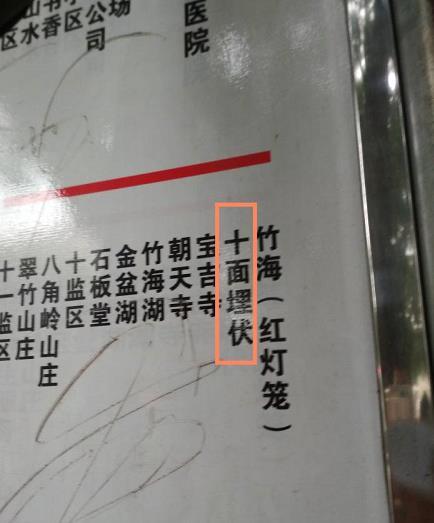 日前,有网友在重庆永川区蚂蝗桥公交站候车时,发现车站的站牌上显示着一个名叫“十面埋伏”的公交站,霸气十足。