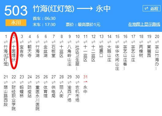 9月30日一早,重庆时间小编通过在网上查询得知,这个“十面埋伏”站是永川区503路公交车,停靠的一个站点,靠近茶山竹海景区。