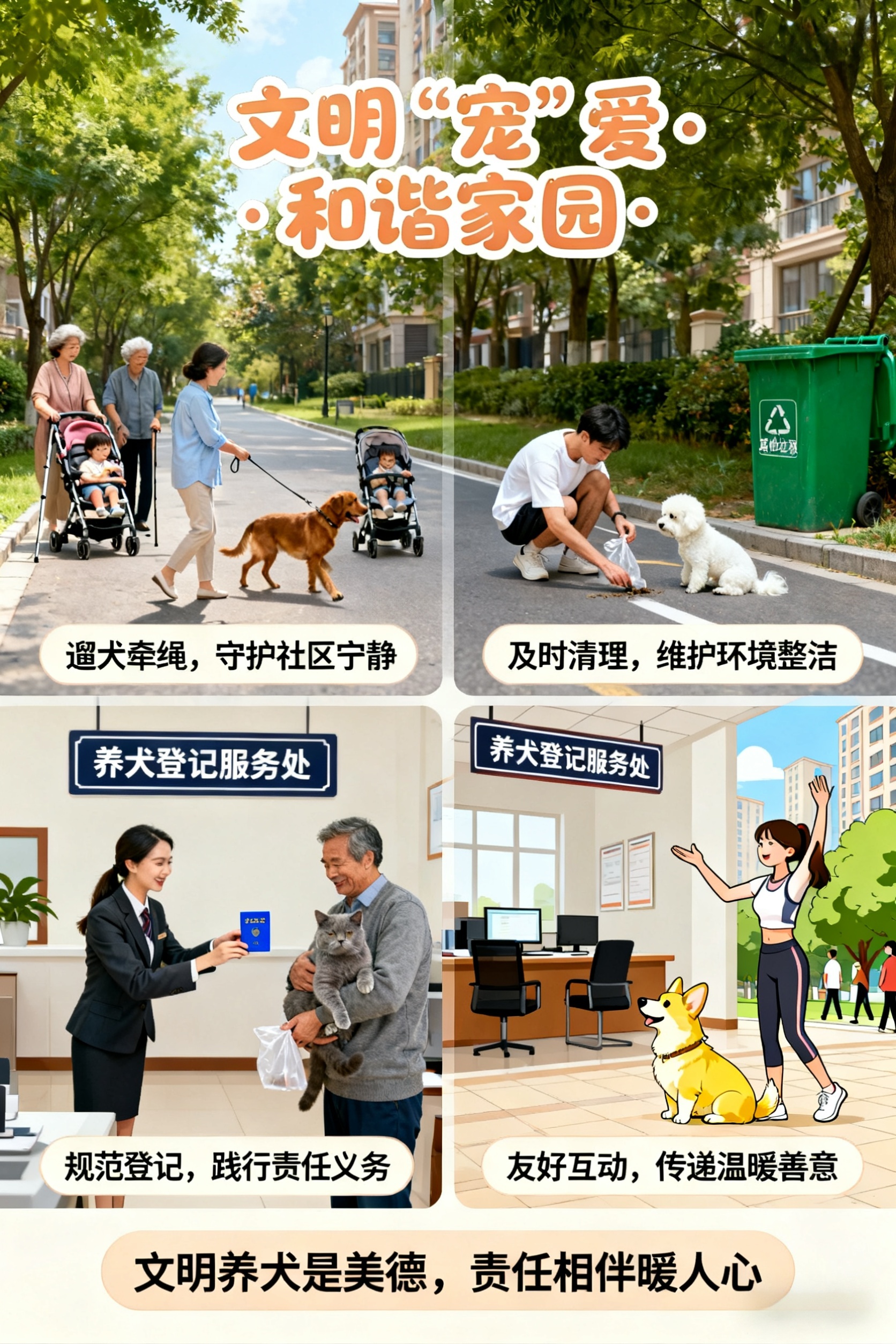 文明养犬是美德,责任相伴暖人心。 让我们从自身做起,争做文明养犬人,共建人宠和谐的美好家园!